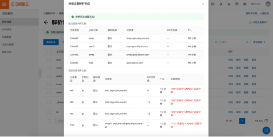 部分網站解析添加了@的CNAME解析后,無法再添加郵箱的MX解析以及SPF對應的TXT記錄。