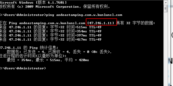 不知道的PING 下當時CNAME@記錄對應的記錄值例:andeastamping.com.w.kunlunsl.com