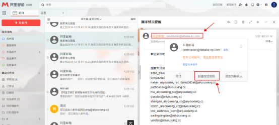 1. 收信箱直接設置,點擊發信地址,跳出的信息框可以直接對發信賬號創建收信規則,設置移動到指定文件夾或者自動轉發。(建議僅在網頁端設置)